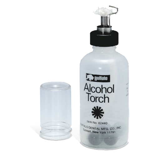 Spiritus-Handbrenner mit Miniflamme. Zum Glätten der Oberflächen von Wachsmodellationen. Durch Druck auf die Flasche lässt sich die Flammengröße regulieren (nadelfeine Stichflamme).