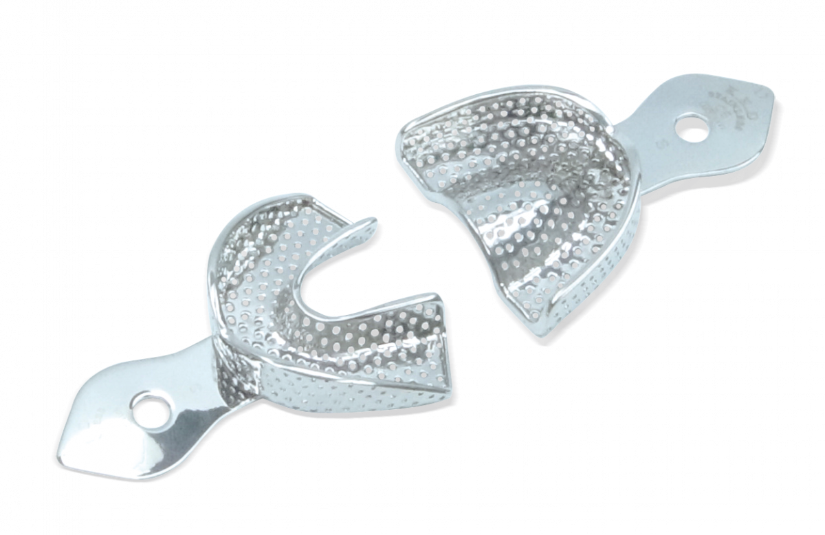 Impression tray with increased retention due to perforation. Best suited for alginate impressions and impressions which require best adhesion.